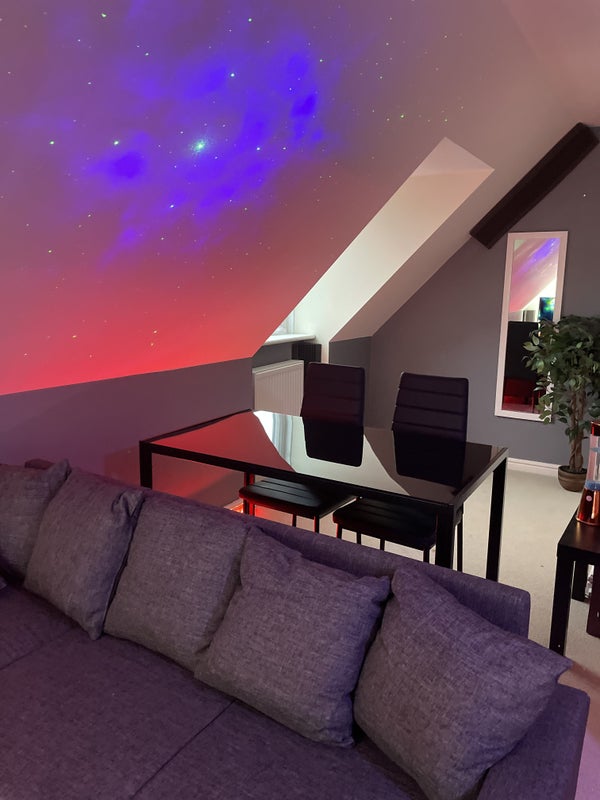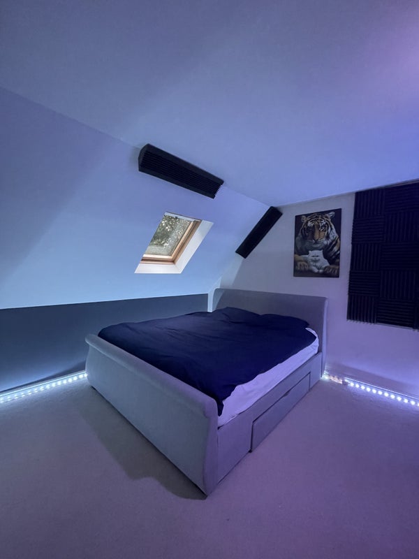 Natural light- 3 Skylight windows allowing natural lighting, Smart LED's & light bulbs included as shown in photos/ video.
