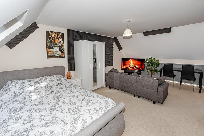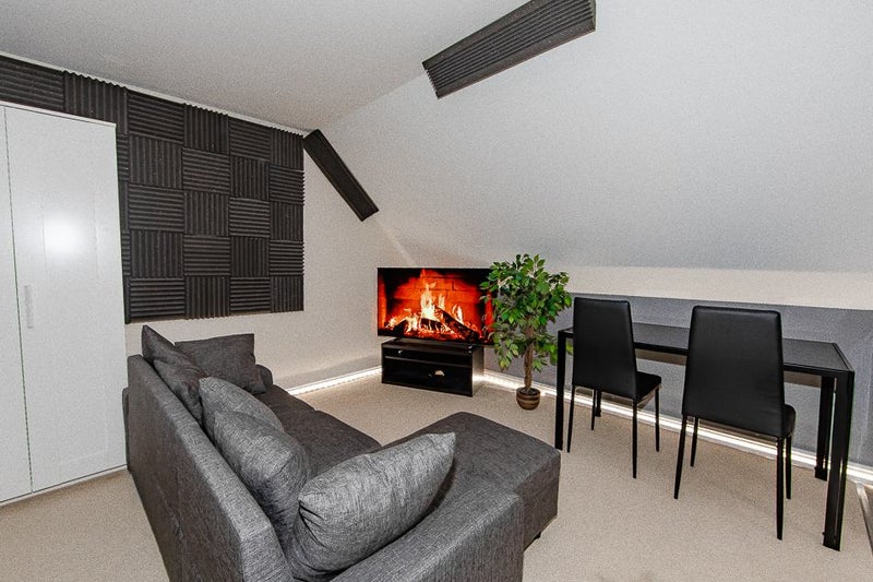 Top Floor En-suite self-contained flat with kitchen, in a reconverted music studio, available in a shared house in a quiet, friendly neighborhood with free, convenient parking. Looking for a single, working professional to fill the space.