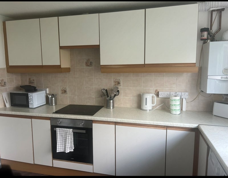 Fully equipped kitchen with 2 fridge/freezers, electric cooker, electric hob and washer/dryer. Laundry detergent and cleaning materials supplied.