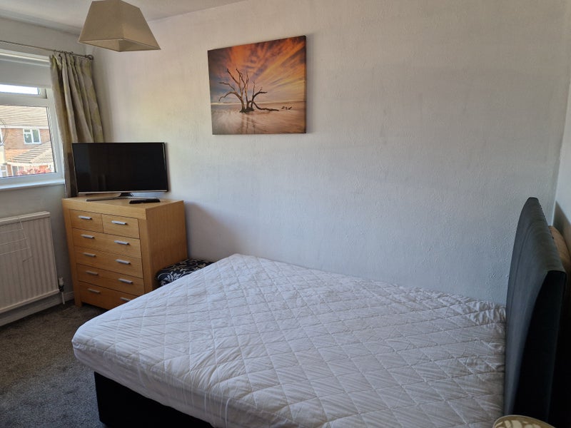 One double for rent in an end of terrace 3 bed house (Room in photos is the one available). Fully furnished. Parking available, garden, WiFi, sky tv, shared living room/diner, bathroom and kitchen. All bills included. Live in 34 year old landlady. I have a medium sized dog who is rather nervous so need someone that is dog friendly.