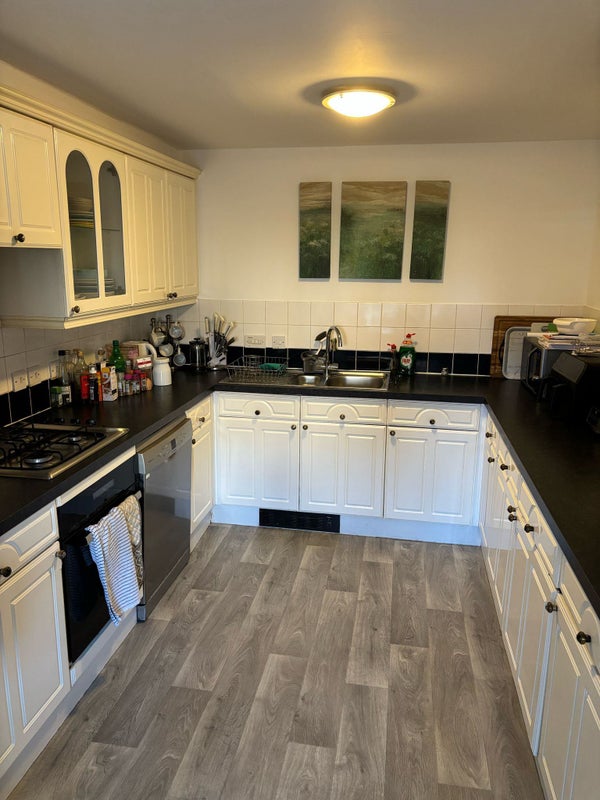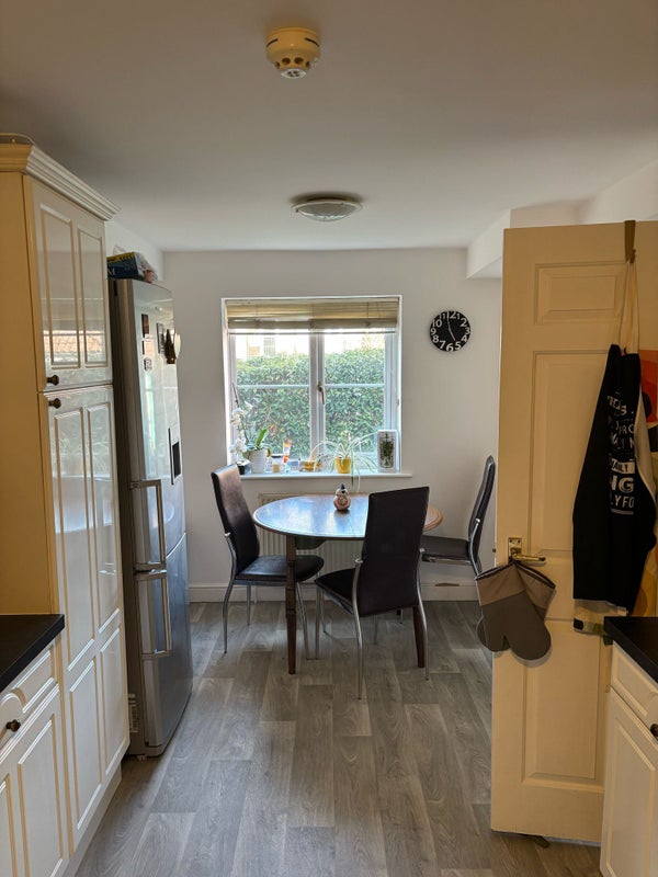 A bit about our house - downstairs - ALL of which is for the use of the housemates we have a kitchen/diner and separate large lounge with access to the garden via 2 sets of French doors , as well as a separate utility room with FREE use of both washing machine and tumble drier as well as a downstairs cloakroom. The kitchen has loads of storage space, oven, hob, microwave, air fryer and two fridge/freezers. The bright large lounge is really comfortable and homely and has ample quality seating and two patio doors opening onto the garden and a 65" TV. The large patio with its table and chairs is great for BBQs in the summer. It also has a large TV and Sky is provided free of charge! Free high speed fibre broadband is available throughout the house.