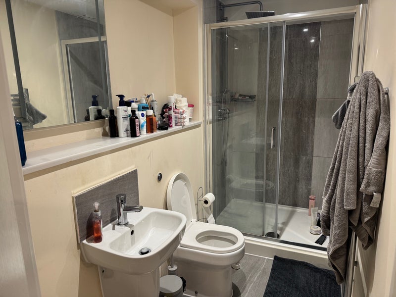 Double room with large ottoman bed and en-suite with shower and toilet. Very big closet for either clothes or storage! Modern flat with dishwasher, great kitchen and shared living room.