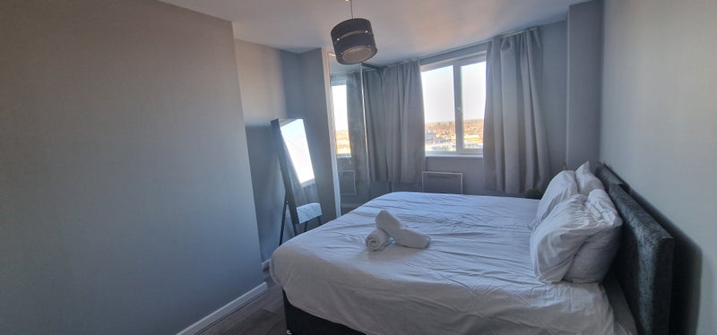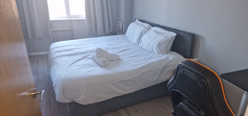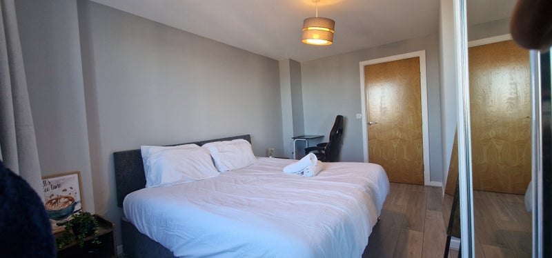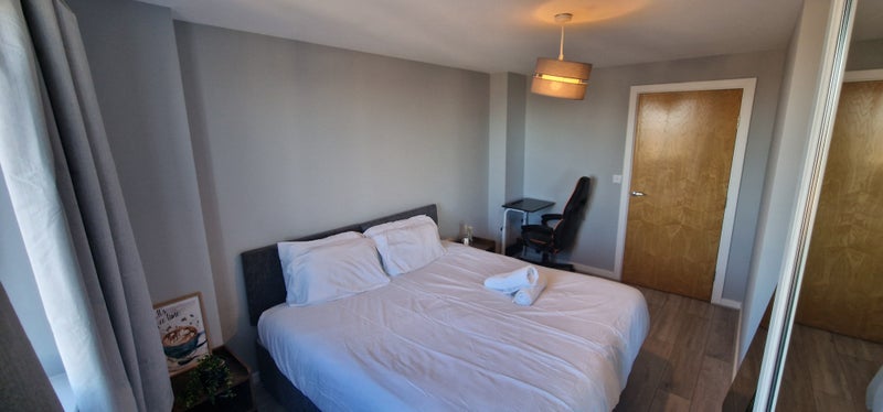 Kitchen has fridge freezer, washing machine airfryer and dishwasher. Lounge has 65 inch TV and a dining table. Flat is is within walking distance of the train station and the town centre and there are multiple gyms in the area