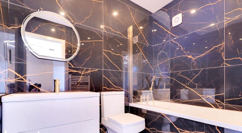 The modern bathroom is finished with stylish fixtures and fittings, complementing the overall sophisticated feel of the property.