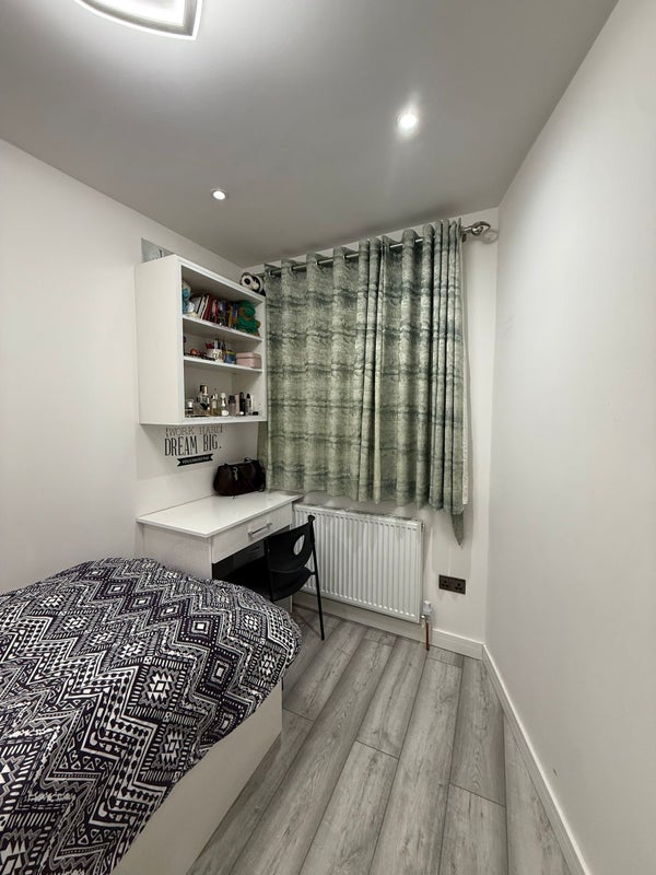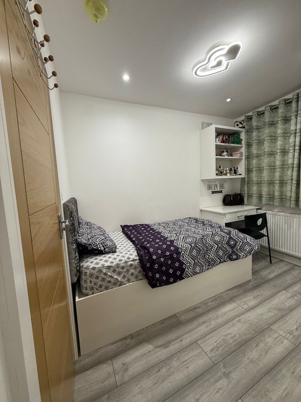A bright and modern single room available in a well-maintained home in Chigwell. The room comes fully furnished with a comfortable bed, a desk perfect for working or studying, and a spacious wardrobe for storage.