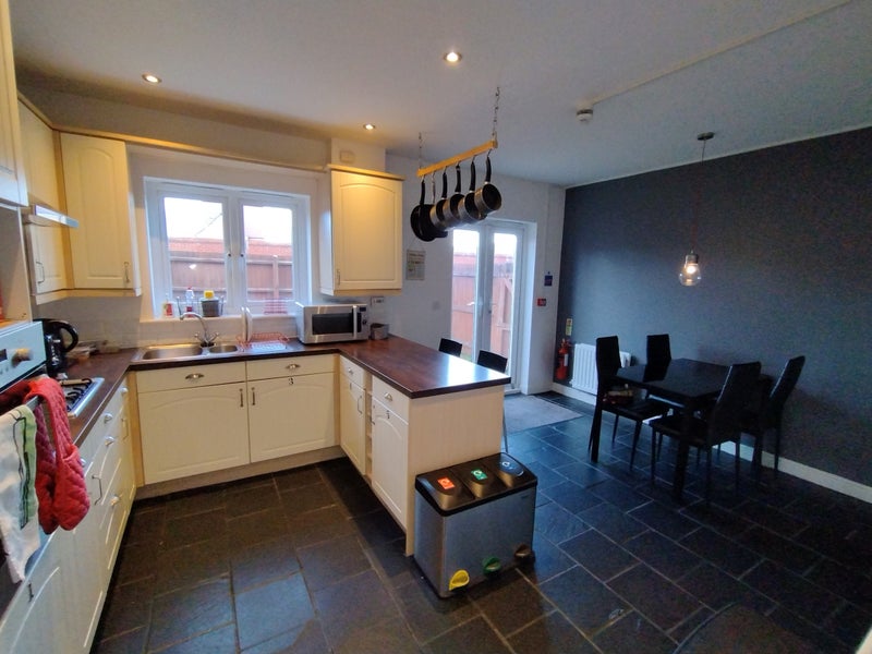 * Large shared kitchen and utility room equipped with hob,