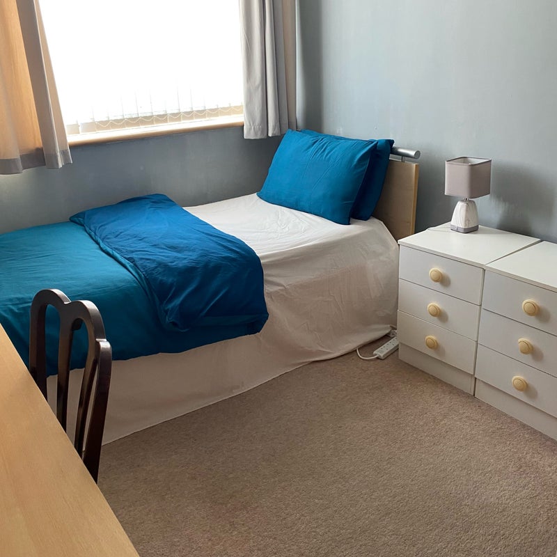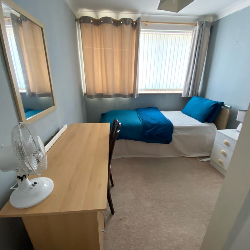 I have a lovely, clean single room to let in a Morden house. Free parking available .