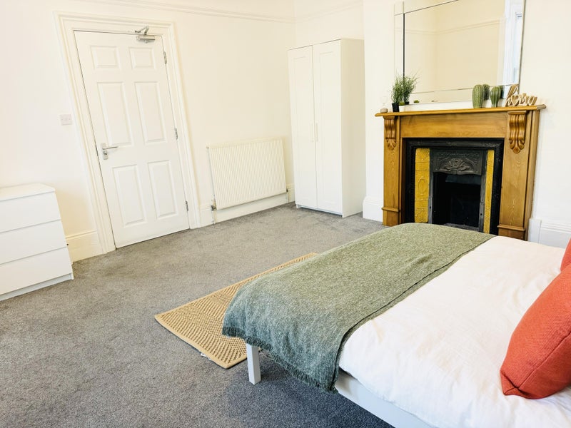 SMART QUIRKY ROOM that comes fully furnished with DOUBLE BED & MATTRESS with mattress protector, LARGE DOUBLE WARDROBE, large chest of DRAWERS, DESK & 2 chairs, SOFA. TV, bedside CABINET, lots of STORAGE, your own bedroom door key. HIGH ceilings giving the feeling of SPACE. Room is situated next to one of 2 x SPOTLESSLY CLEAN bathrooms with mains powered showers (you will share a BATHROOM with only 1-2 other tenants).