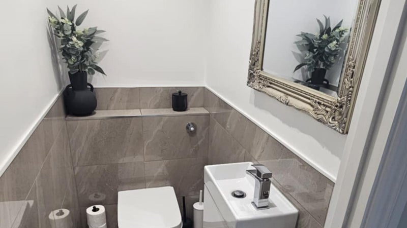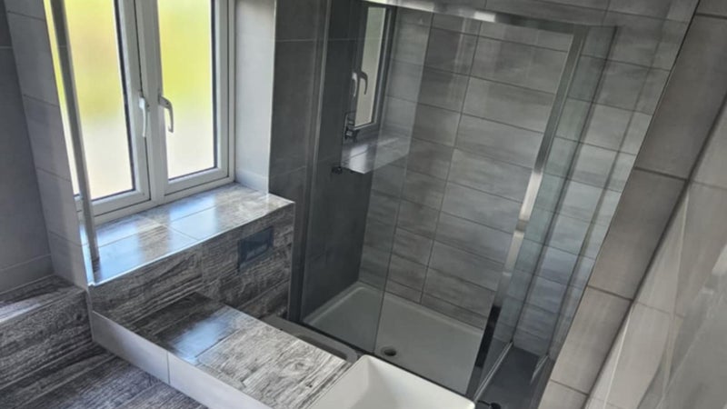 🛁 First-Floor Room: Shares a luxury tiled bathroom with only one other resident, featuring a walk-in shower, vanity unit, WC, and heated towel rail.
