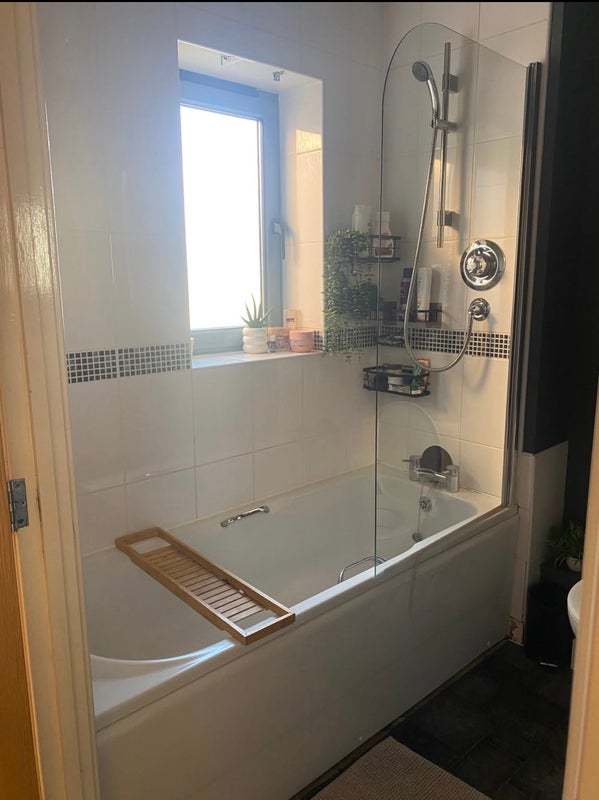 Bath with mixer shower over Shower screen Heated towel rail