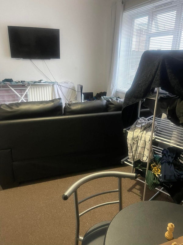 1 bedroom studio flat with separate kitchen and partly separate bathroom. It’s on 1st floor.