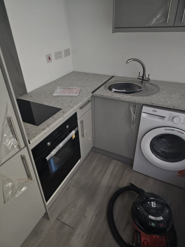Fully fitted kitchenette with storage cupboards