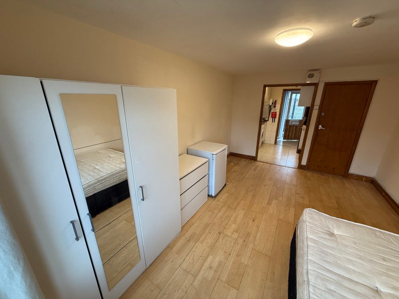The property features a bright and practical open-plan living space, designed for comfortable day-to-day living. It includes a furnished sleeping area, a cosy lounge space, and a fitted kitchenette with essential appliances. The studio also benefits from a modern bathroom, finished to a good standard throughout.