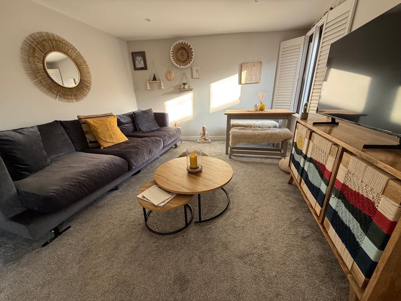 Shared areas include a cosy living room, modern kitchen, and main bathroom. The flat is beautiful, clean and relaxed, perfect for someone who works in aviation, is airport-based, creative, or is based in Dunmow or the surrounding villages. London 35 min drive, 40 mins by train.