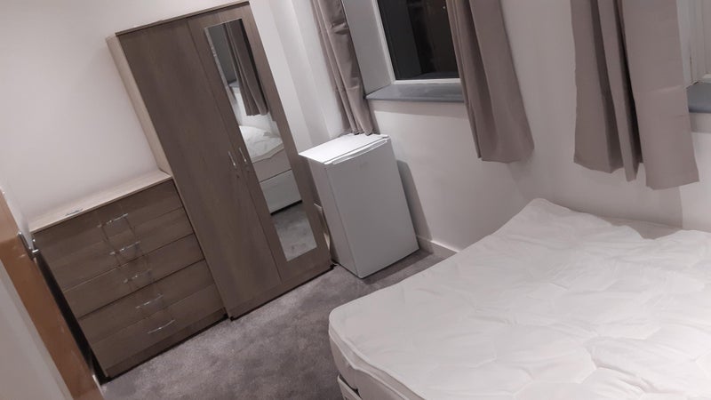 Small double room for single occupation, 2nd floor, with own ENSUITE, near Aldi and busses to AIRPORT, own fridge, £775 per month, expected to be available soon.