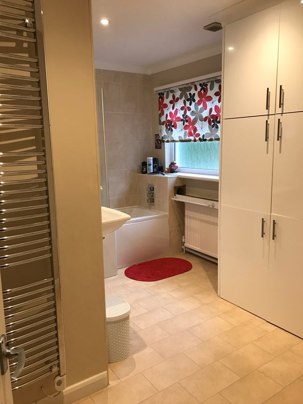 Large bathroom/shower room shared with one other male. Large drive for parking.