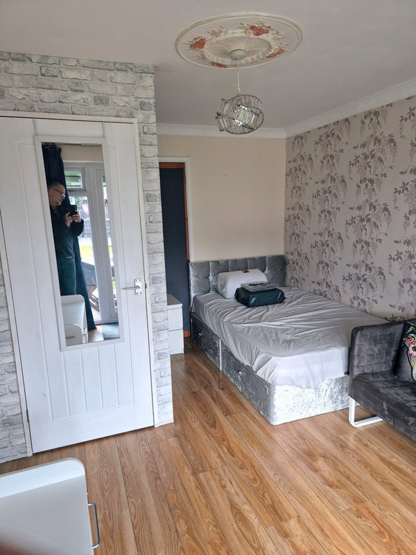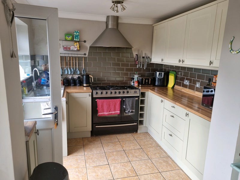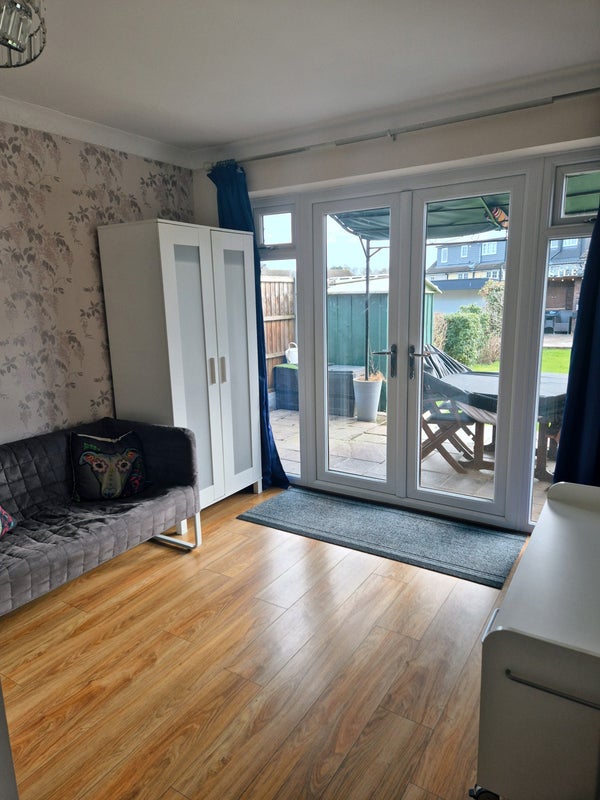Your own access will be via the rear gate and through the shared kitchen (fully equipped) with a dinning area. You will get a large kitchen storage cupboard, top 2 shelves of fridge and top drawer of freezer for you food.