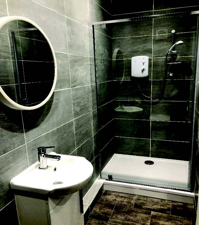 The ground floor consists of a large communal area – consisting of a brand-new shared kitchen with all the convenient appliances. A full-sized electric fan oven, electric ring hob, fridge freezer, washing machine, tumble dryer, dishwasher and sink. The house also provides a great shared living space for use by the three room lets with a 50 inch smart flat screen TV, Sofa and Dining table.