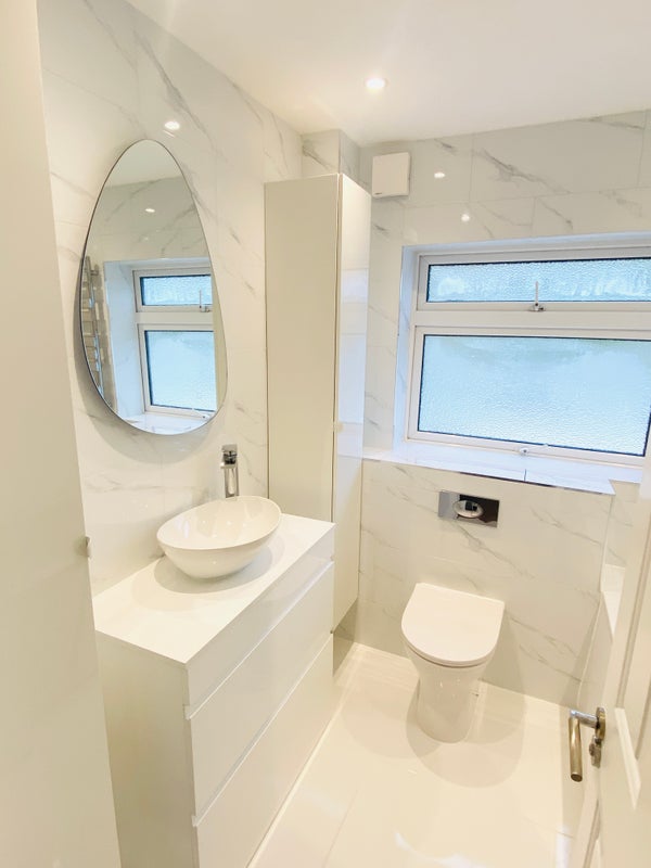 - Newly refurbished bathroom with bath and shower