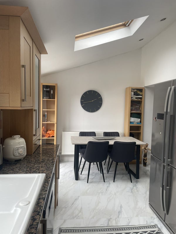 This exceptional property offers a perfect blend of comfort, style, and security. It features five well-appointed bedrooms, including one single room, three spacious doubles, and a luxurious king-size en-suite with its own private kitchenette. The expansive communal living area is furnished with plush leather corner sofas, ideal for relaxing or socialising. The sleek, fully equipped kitchen boasts premium appliances, including a dishwasher for added convenience. Recently renovated, the porch, corridor, and kitchen now showcase stunning marble-look tiled flooring, which beautifully complements the elegant wooden finishes in the bedrooms and lounge. Outside, the property offers a generous driveway with space for three to four vehicles, along with a charming back garden perfect for enjoying sunny days. For added peace of mind, the home is fitted with 24/7 CCTV surveillance, ensuring a safe and secure environment for all tenants.