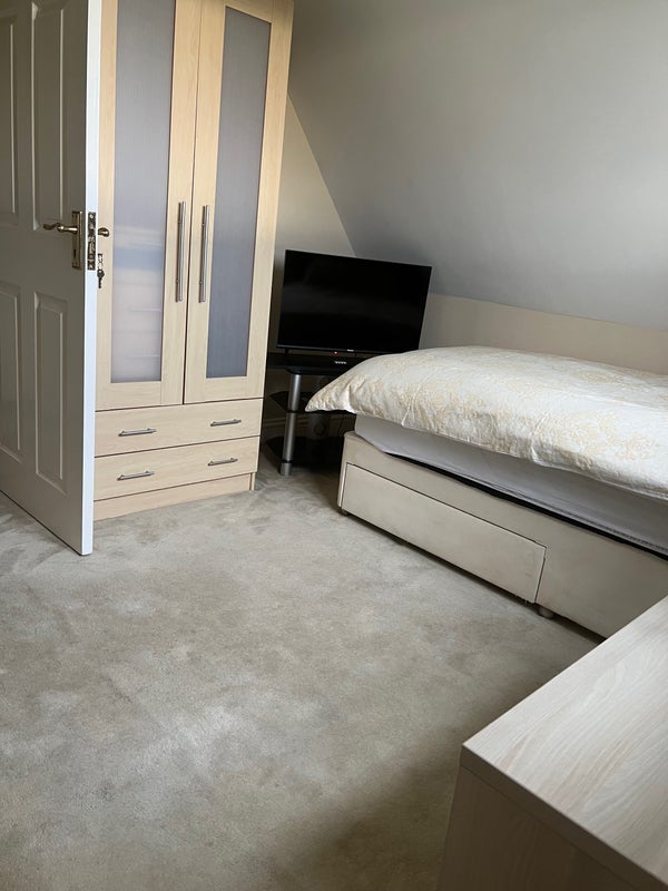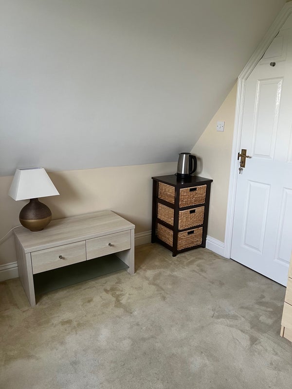 The room has plenty of storage, tv, kettle, nice bedding. The room is serviced fortnightly and clean bedding is supplied in the service including towels toilet rolls etc. This is an upstairs room with an amazing view across the paddocks at the rear of the house.