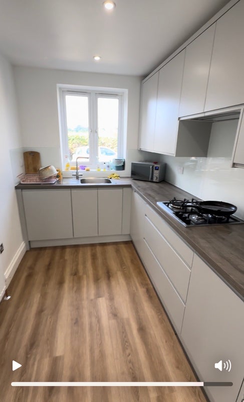 The house comprises of a shared kitchen, bathroom, lounge, and dining room with a garden and shed (to store bikes in) and patio to the rear and parking for 5 cars to the front.