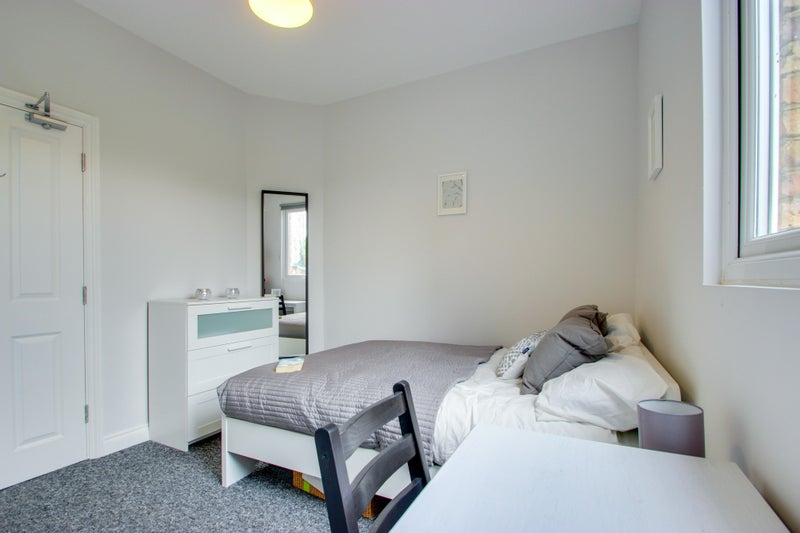 The rooms are furnished with a double bed, wardrobe, chest of drawers, bedside table desk and chair.