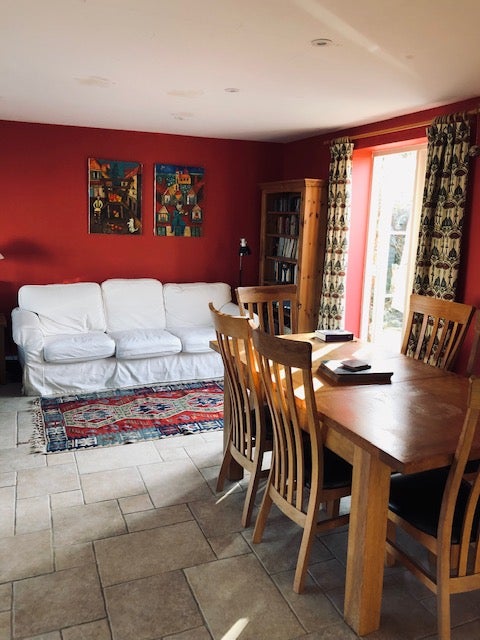 Large room with double bed and separate bathroom in quiet, non-smoking house near to river available from January. Shared use of spacious open plan kRitchen/dining/sitting room and garden.