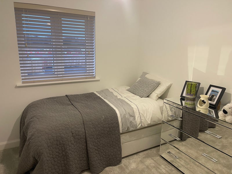 Large single room with shared bathroom, close to amenities and great transport links. Handy for the Victoria hospital. Use of kitchen and large back garden.