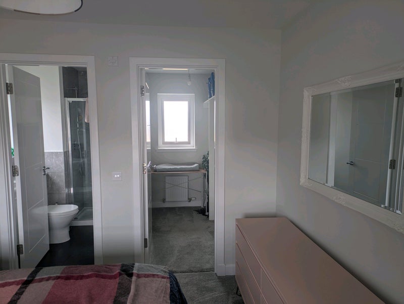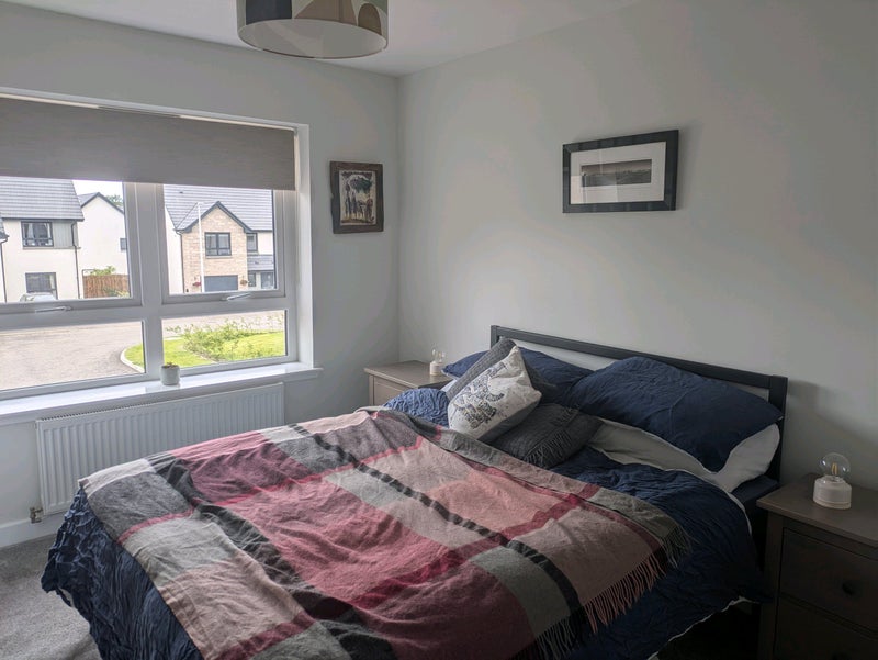 Room with king size bed, desk, en-suite shower room, and walk in wardrobe, available in family home 2miles outside St Andrews.