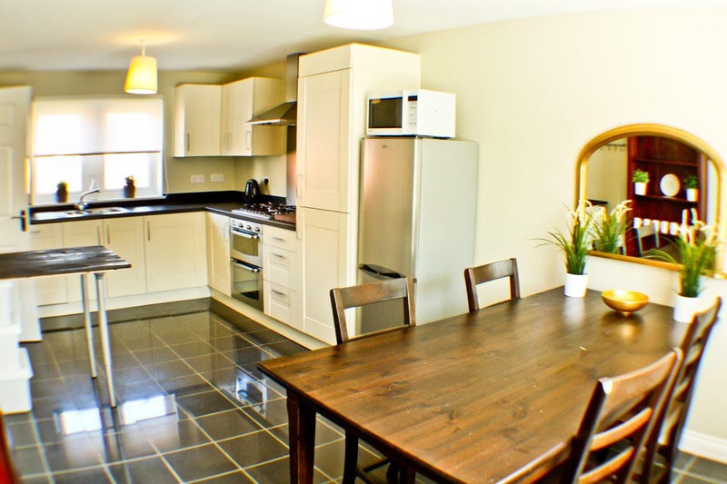 • The shared kitchen / diner space is also on the first floor and has plenty of cupboard space and is fully equipped with everything you might need during your stay to cook yourself a meal,
