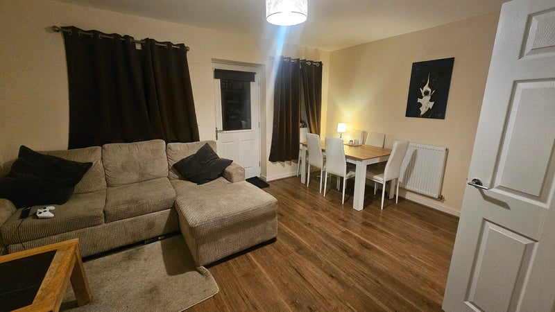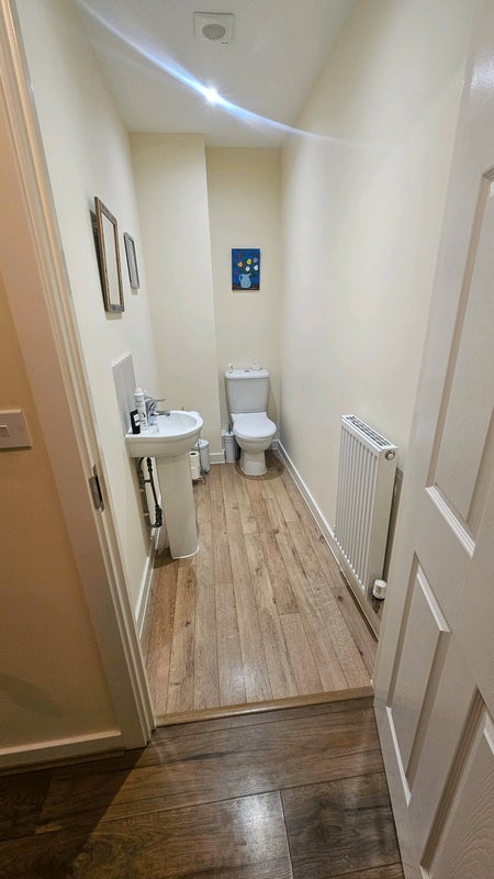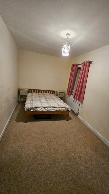 Fairly new build house with a garden, shared bathroom upstairs but there is also a downstairs loo, the room is currently furnished with a double bed, two bedside tables and a clothing rail, feel free to bring any furniture (i am on the look out for a chest of drawers/wardrobe for the room.