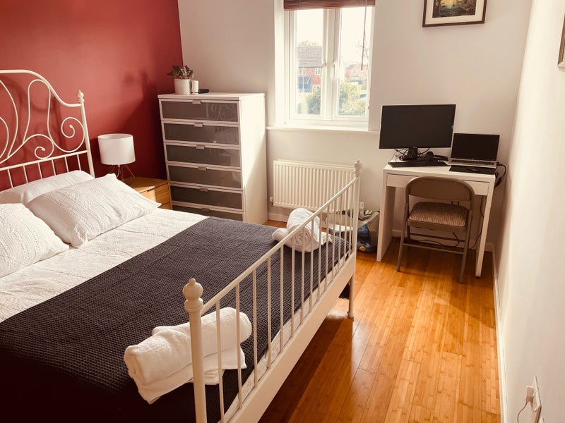 Fully furnished: double bed, wardrobe, drawers, bedside table, desk