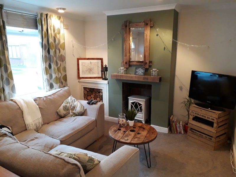 Outside, there's a small patio and a shed, but the shed is full of my upcycling / wood work stuff. (I upcycle and sell electric cable reels as a hobby).