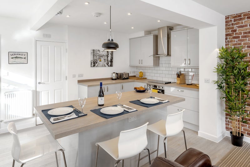 * Open plan kitchen and living area