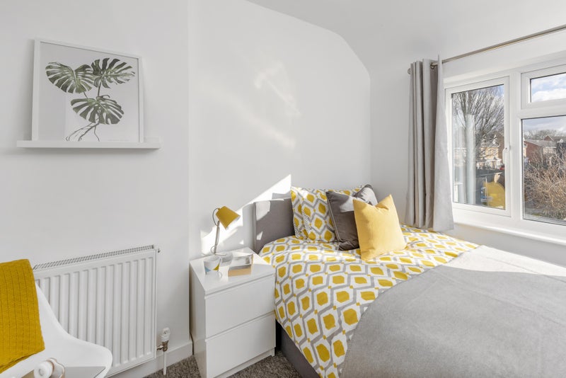 Spacious professional house-share. Shares a bathroom with one other housemate. Weekly communal cleaner! 10 minutes walk to train station and town centre!