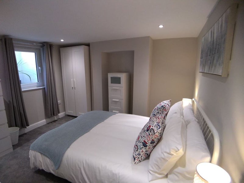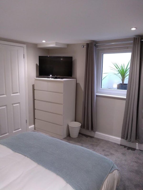 This is a fantastic basement room with its own staircase leading down to a beautifully decorated room. The furnishings are all modern and all that you should need is provided, USB sockets, lovely bedding with comfy double bed, smart TV, Netflix, broadband, great storage with double wardrobe, two chest of drawers and bedside cabinets.