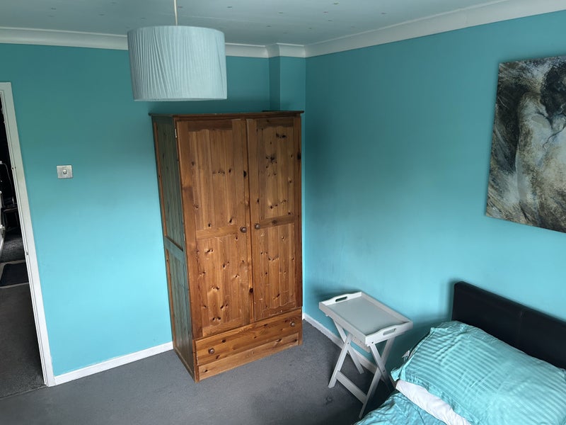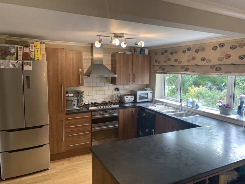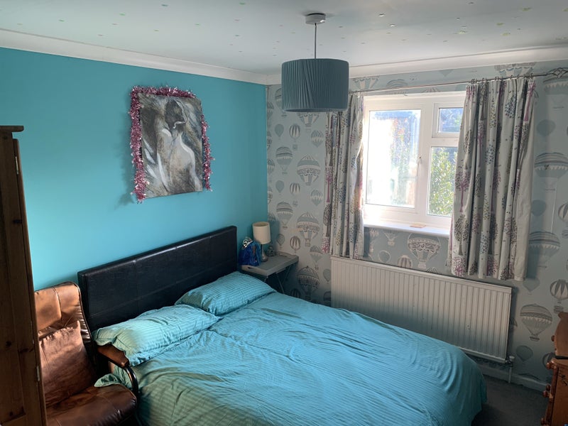The house boasts a large kitchen and dining room area, spacious lounge and a west facing garden which gets the sun all day in the summer. There’s a conservatory with a gym (you can use) which leads out into the garden. You get your own fridge freezer and plenty of storage for your food and utensils in the kitchen.