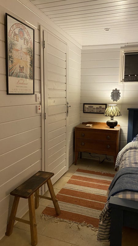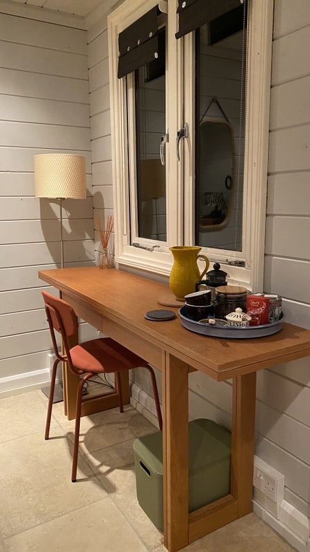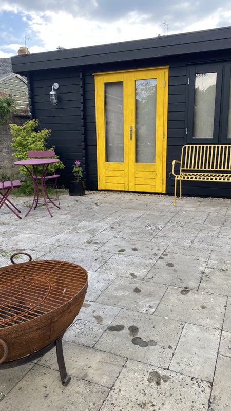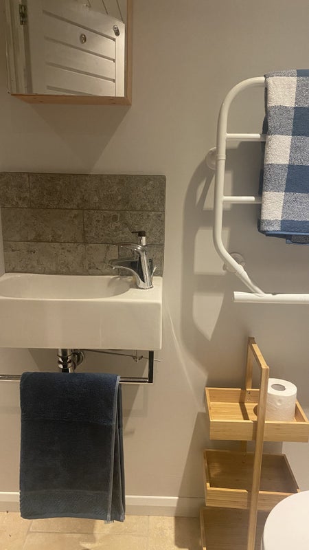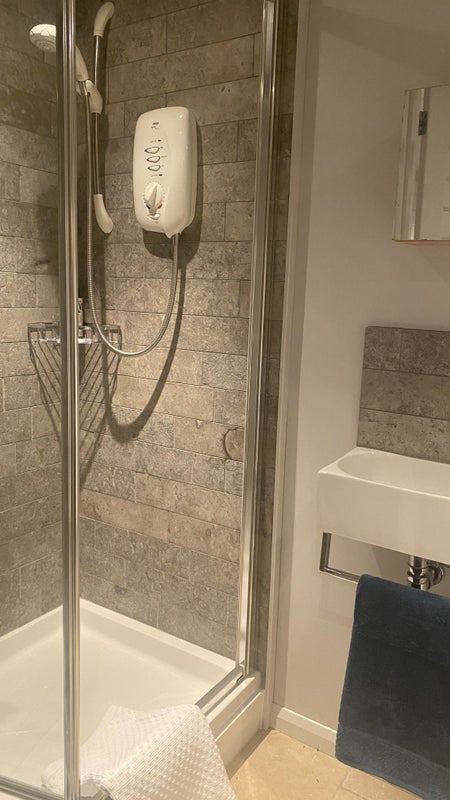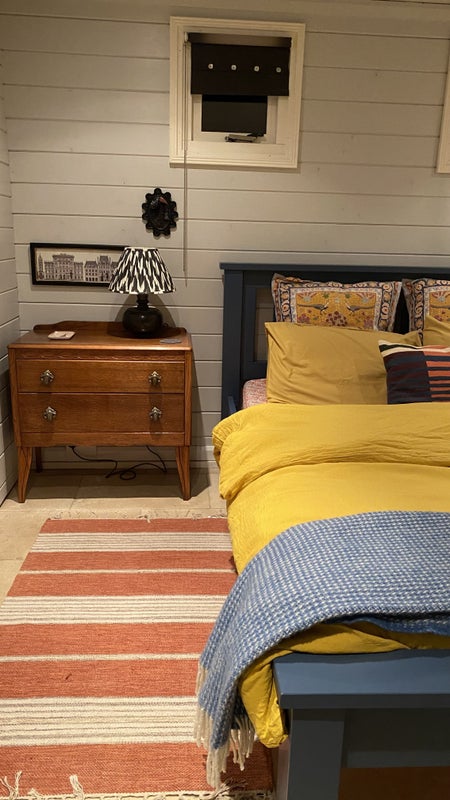 A self contained cabin in the garden with separate entrance and parking. King size bed, en suite shower room and small kitchenette with fridge, kettle and microwave. There are no other cooking facilities. Under floor heating keeps the cabin nice and warm.
