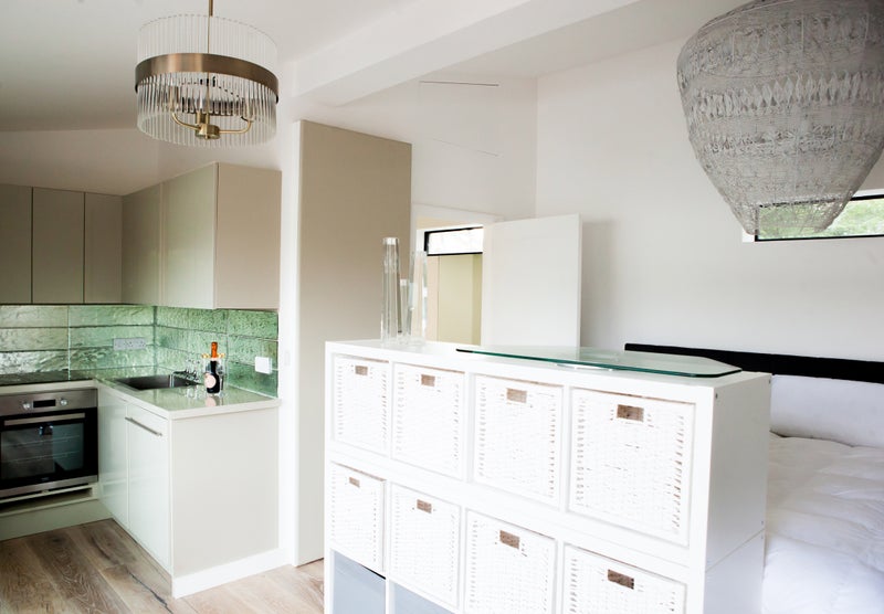 Self contained studio with fully fitted interior , luxurious bed in a very quite cul de sac . Outdoor seating and barbecue area