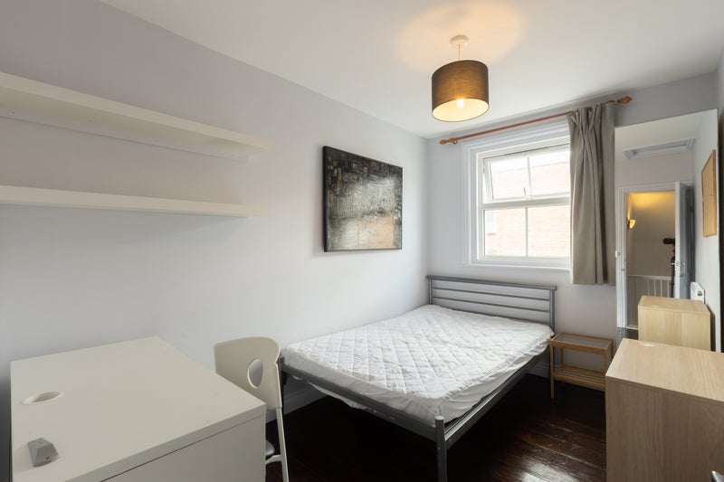 All rooms with bed (3 with a double bed & 1 with a single bed), chest of drawers, desk & chair, shelving, bedside table. Stained natural floorboards or carpet flooring. Small communal lounge, fully fitted kitchen with washerdryer, tall fridgefreezer, gas hob, electric oven and table and seating for 4. Bathroom with bath and separate shower. Gas central heating, Superfast internet speed for work from home. Newly painted. Courtyard with table and chairs. The house is in a lovely convenient location and reasonably priced. Come and have a look!