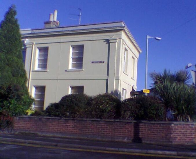 Located on mini roundabout where Hewlett Road and Fairview Road meet, post code is GL52 2EU.