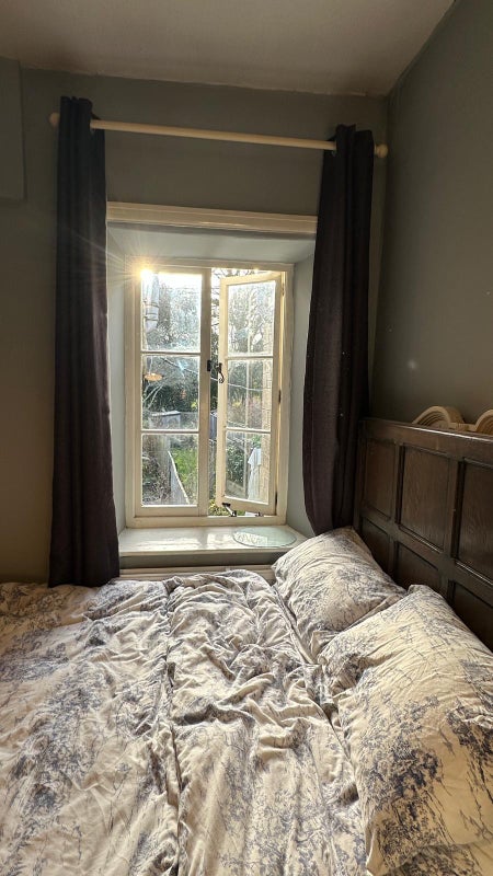Double room in terraced house with garden within walking distance of Cirencester town centre whilst on a quiet street. Shared bathroom with bath and overhead shower. Animal friendly - have a dog and guinea pigs. Shabby chic decor. Small French farmhouse style kitchen. Open plan sitting room and dining room with working fireplace. Unsuitable for working from home. Room is fully furnished with bed, chest of drawers and wardrobe. Free parking on street. All bills included.