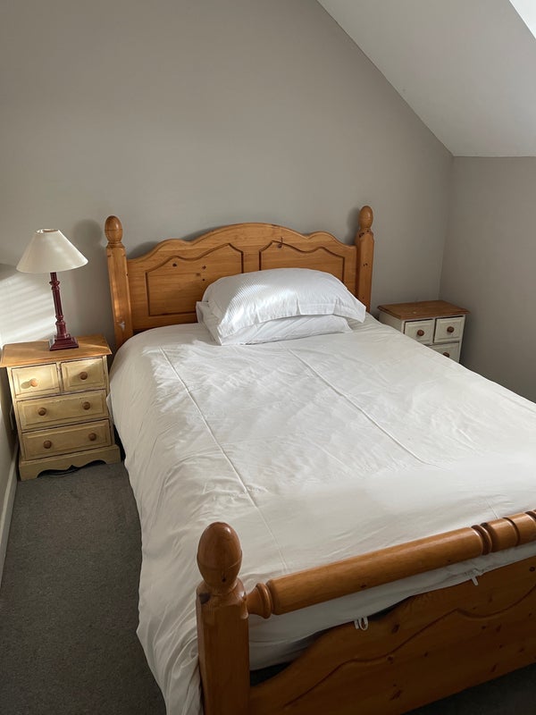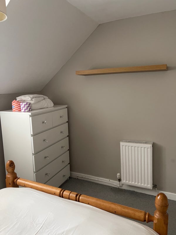 A furnished double room in shared house on first floor. Eat in kitchen, downstairs toilet, utility room and living room shared between 3-4 house sharers. Garden also. Parking on road. First floor Bathroom shared between two rooms.