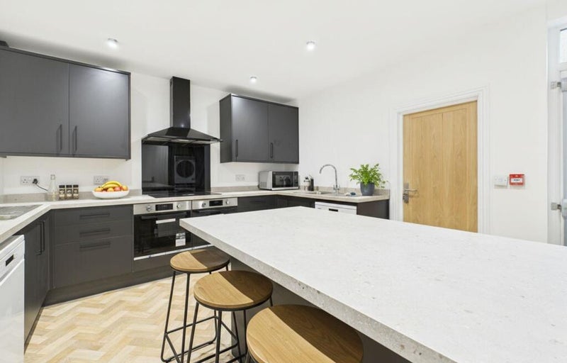 Shared Kitchen with two ovens, two hobs, two fridges, two dishwashers, washing machine, tumble dryer and a washer dryer.