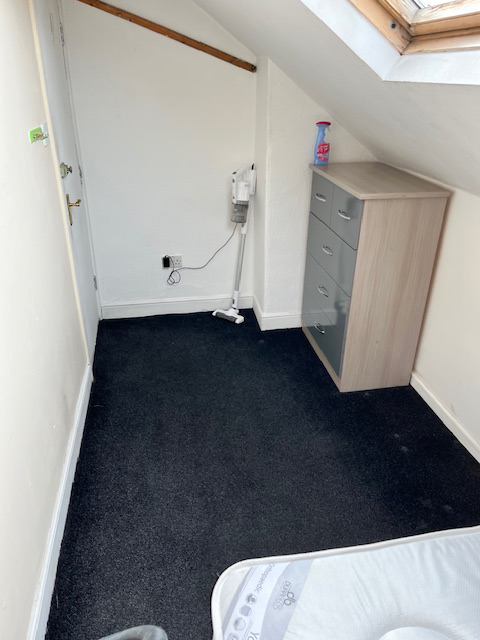 Small room in shared house, room size and top floor location reflected in lower rental cost.