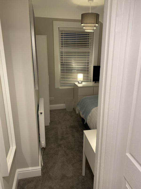 This is a lovely double room with a en-suite shower room becoming available on 1 June for a single professional. It is walking distance to the town centre and hospital in a very quiet, no through road. The rent is inclusive of all bills, Netflix, WIFI, Cleaner and Gardener.
