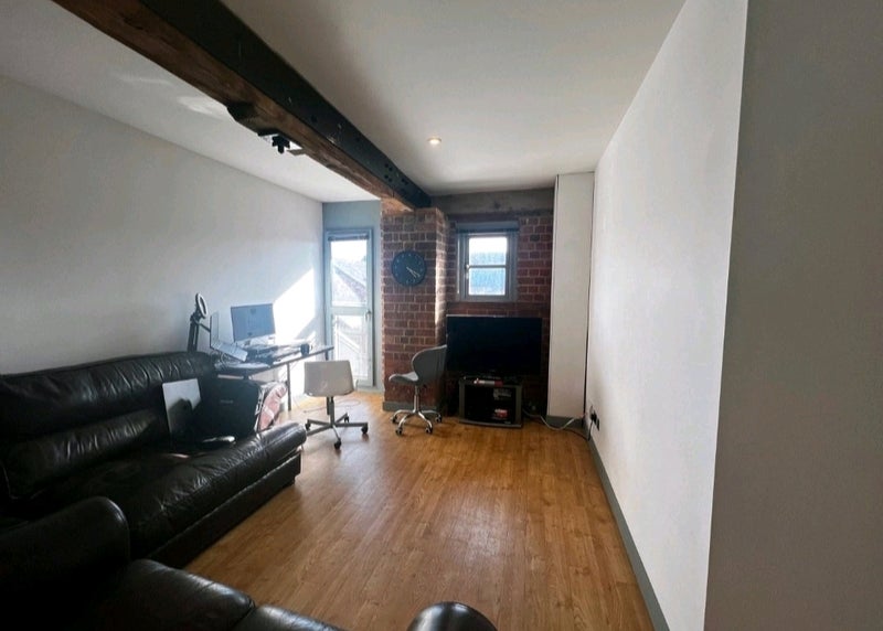 Double room available in a modern 2-bed, 2-bathroom apartment in the heart of Gloucester Quays. The room is furnished with a double bed and has good natural light, with character features including exposed wooden beams. The flat offers a spacious open-plan living room and fully equipped kitchen, ideal for shared living. There are two bathrooms, including a modern bathroom with a bath/shower combination, so there’s minimal sharing.