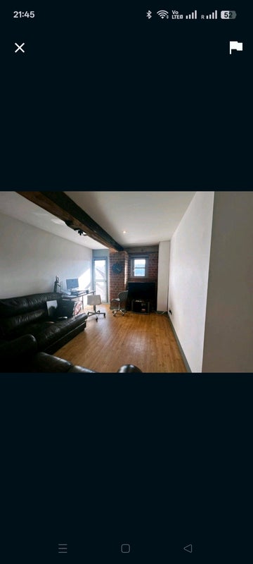 Double room available in a modern 2-bed, 2-bathroom apartment in the heart of Gloucester Quays. The room is furnished with a double bed and has good natural light, with character features including exposed wooden beams. The flat offers a spacious open-plan living room and fully equipped kitchen, ideal for shared living. There are two bathrooms, including a modern bathroom with a bath/shower combination, so there's minimal sharing.