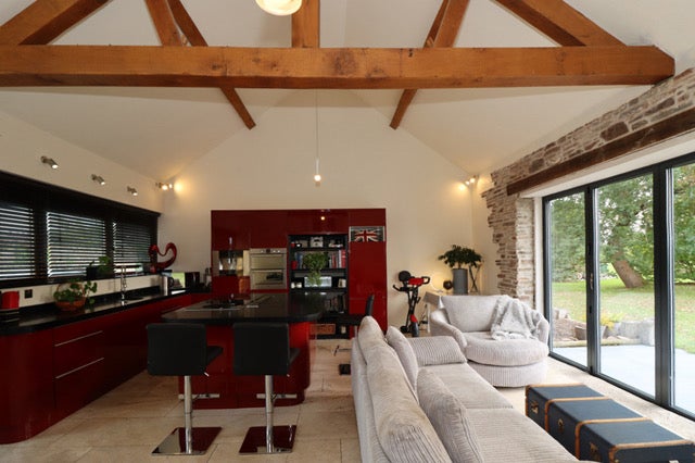 Open plan with a vaulted ceiling and bi-fold doors leading out to the decking area for ultimate indoor / outdoor living to enjoy the seasons.